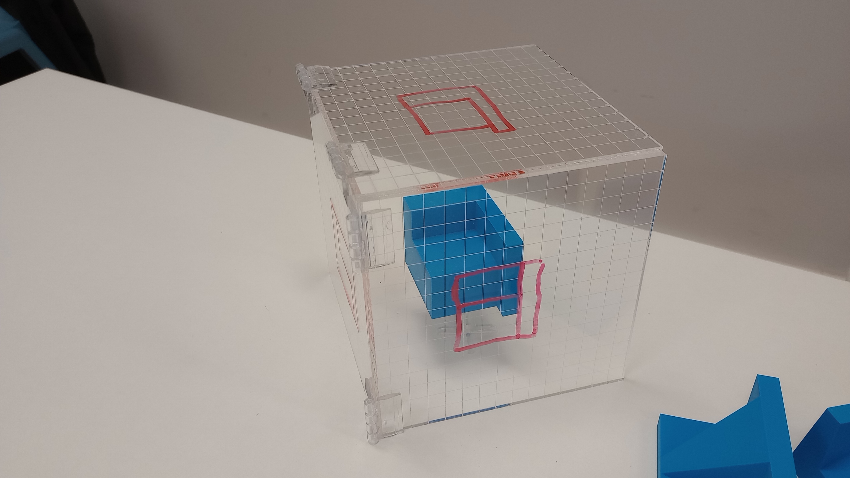Students in groups will use a physical “glass box”, to understand how to project views of an object (using 3rd angle projection) and represent them on a 2D plane.