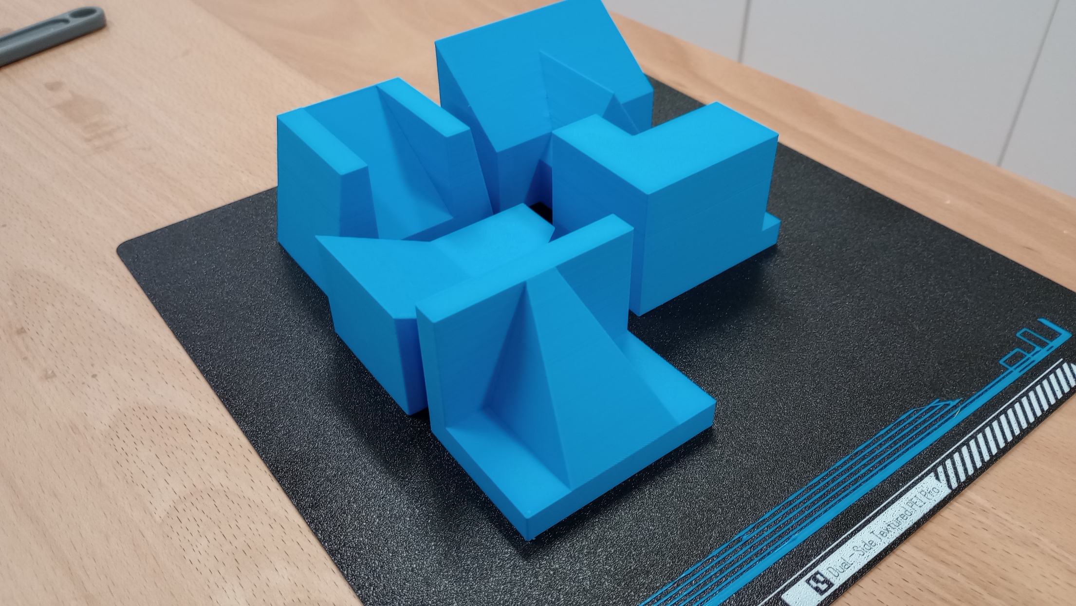 Students learn to draw orthographic projections using the three principal views of an object (front, top and right side view). We use the glass-box concept to show how views are projected onto the planes and then unfolded to present them on a 2D sheet. Working in groups, students receive a set of 3D-printed parts and worksheets to practice third-angle projections and isometric views.