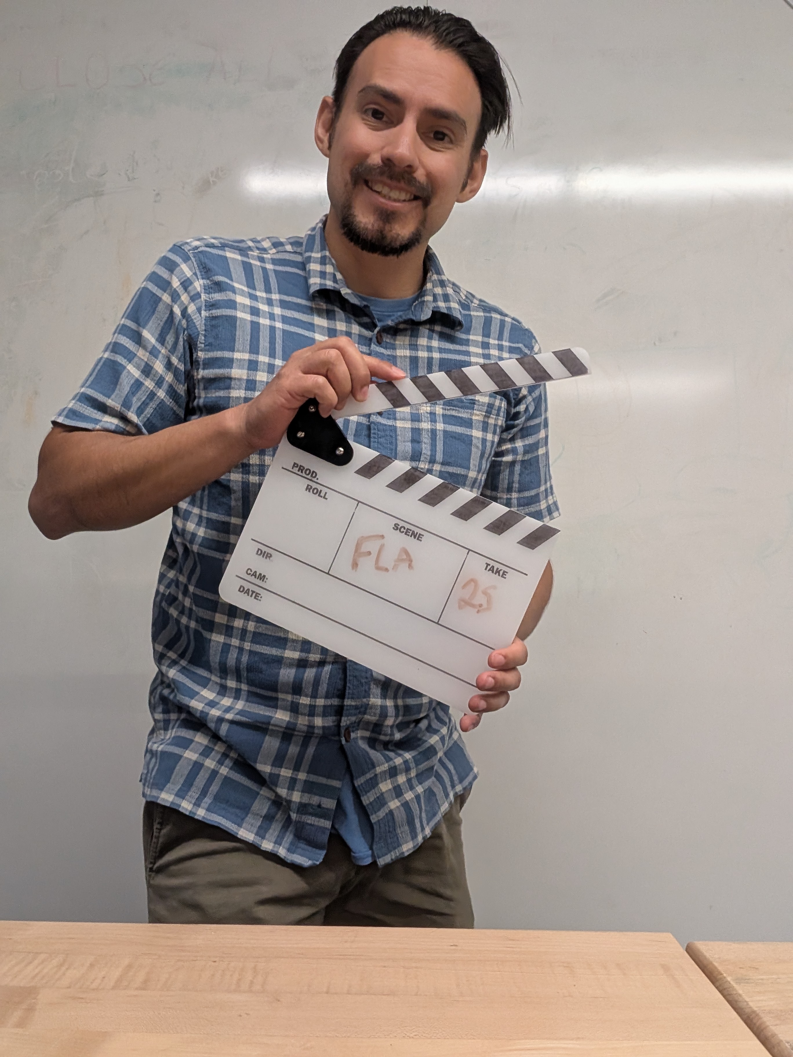 This lesson is for instructing beginning video production students using multiple recording instruments for the first time, and will guide them through using a clapboard or “slate” to create an audio-visual cue that will be helpful in synchronizing media in the editing bay.