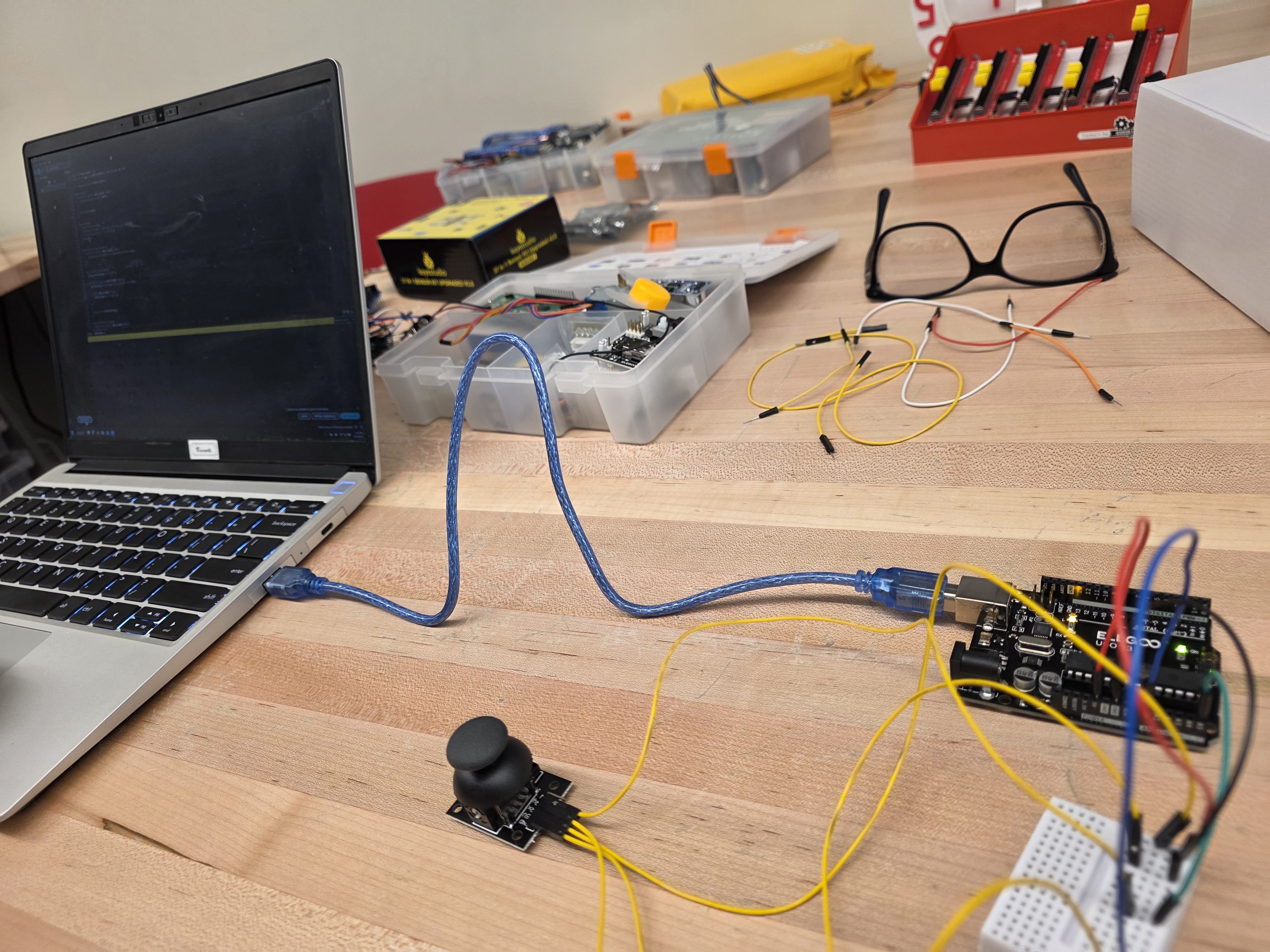 During this Field Activity, I collaborated with the Fab Lab assistant to better understand how the Arduino and joystick function together. This support helped me build confidence in connecting components and programming the joystick to send input to the computer, where messages are displayed. His guidance also helped me anticipate challenges and ensure the activity is appropriate for elementary students. At the same time, I drew from my experience teaching literacy methods to design a lesson that connects storytelling and decision-making. By linking joystick movements to different story outcomes, I created an interdisciplinary lesson that helps students understand how choices affect narratives in an engaging, hands-on way.