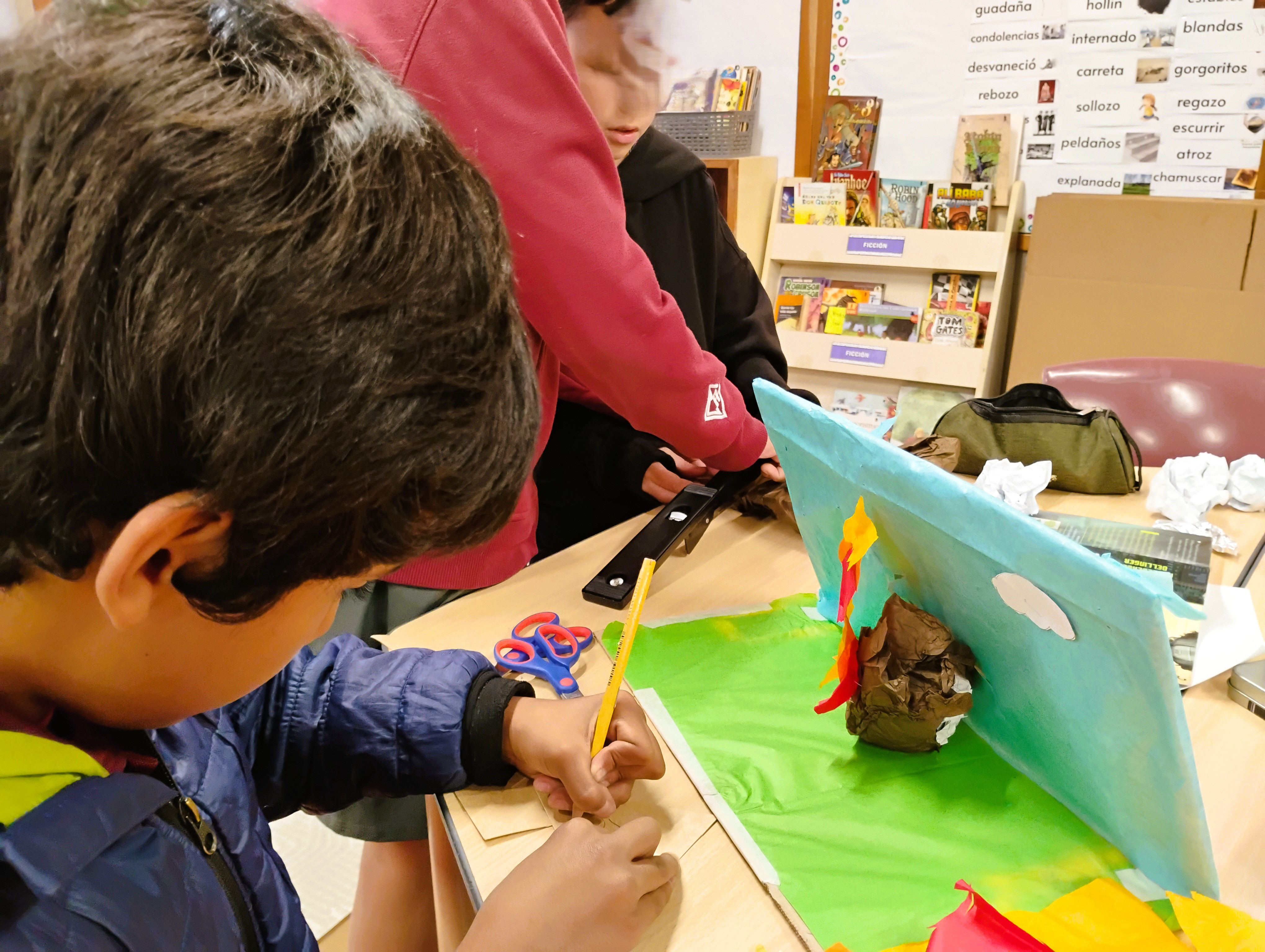 This is a lesson where students explore circuits, storytelling principles and build a scenario to present their story. The idea is that a group of students imagine and create a story considering beginning, middle and end by building backgrounds, characters and additional props they need. Also some important considerations are that at least one part of the story needs to be lit up using a minimum of one circuit. The story needs to have a moral or teaching a value in some moment of the story.