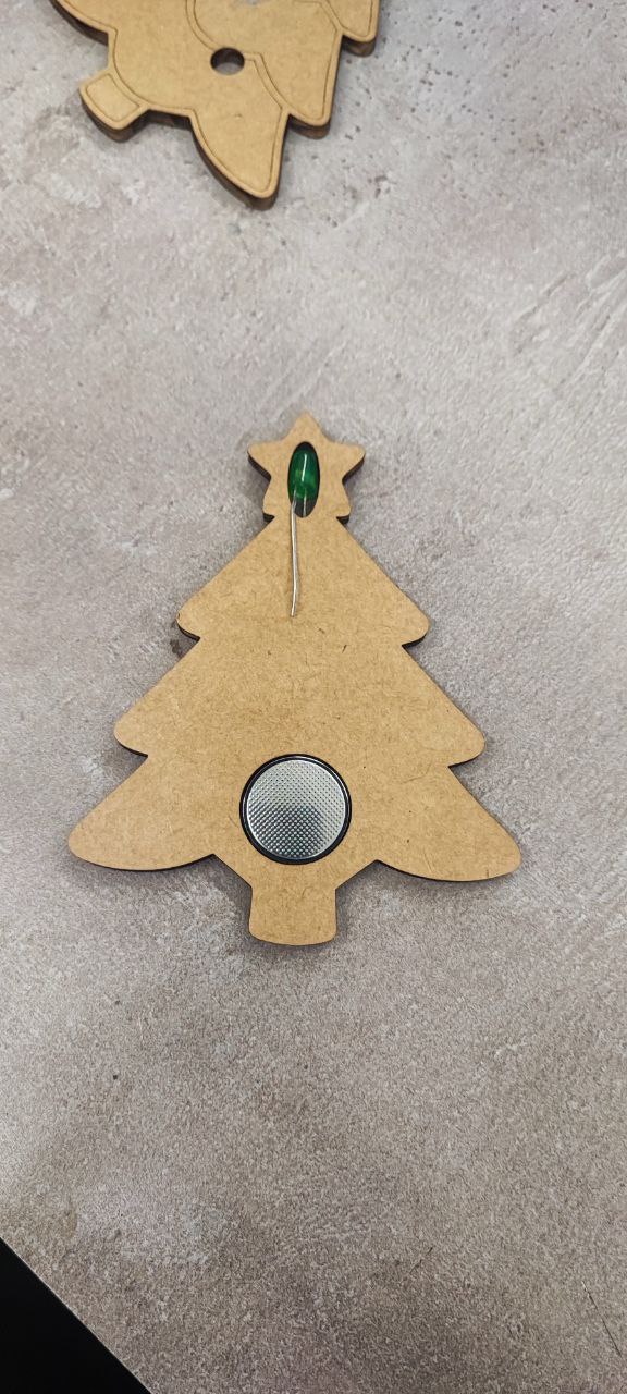 Felt and cardboard are laser-cut. A hole for the battery is also cut in the cardboard.