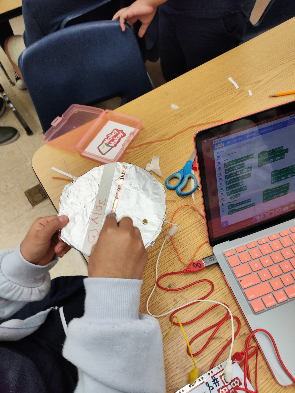 1. This activity combines the two aspects of the curriculum wholeheartedly: sound and technology. The technology is experienced in both the programming and the electricity, which I’ve previously taught in more bit-sized lessons before this one, while still integrating music, one of the most common ways we experience sound these days, although in the future, I would like to find a way to implement the theory of sound in a most clear way.