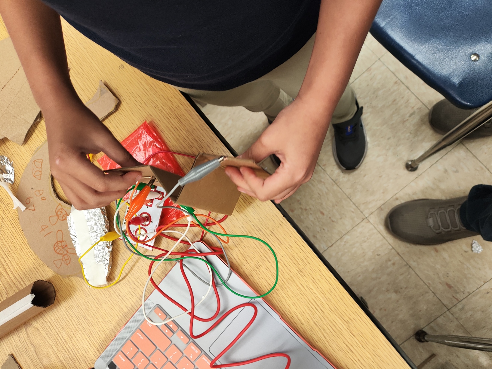 Students will construct their own electronic musical instruments, and get introduced to block programming to make their instruments play sounds.