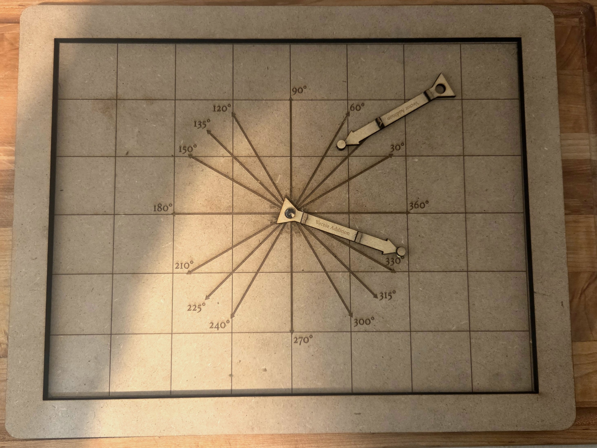 Introduce the board and vectors to students. Allow them time to play with different vector configurations to determine different ways that vectors can be added together.
